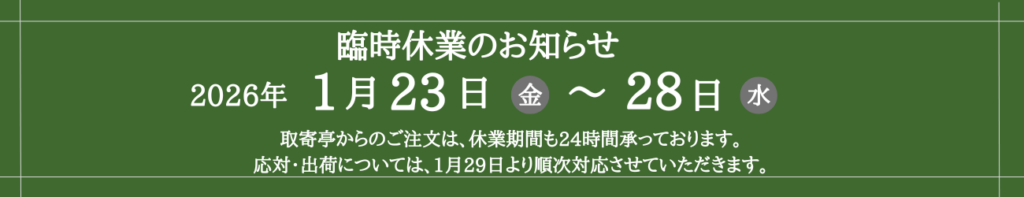 1月の臨時休業のお知らせ 桐屋・権現亭 2026.01.01 毎年恒例の、静岡県浜松市佐久間町新そばまつりへの出店のため、下記の通り臨時休業させていただきます。中部地方のみなさま!佐久間町で手打ちそばを販売いたします!どうぞお楽しみに♪ FacebookBlueskyCopy